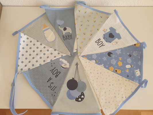Sie sind für das Kinderzimmer gedacht, bestehen aus Baumwolle, sind doppelt genäht und ca. 3.5 m lang.